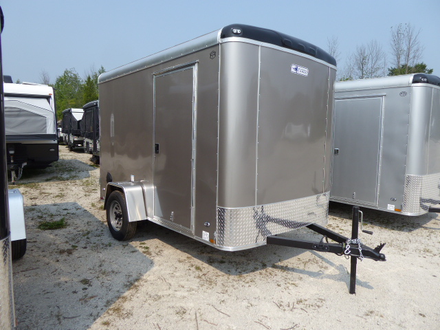 3,000lb Spring Axle, 15” Radial Tires, 6’ 9” Interior, Colour Pewter, 2” Ball, Flat 4 Plug, Silver power coated wheels, E-Z Lube Hubs, 3” Aluminum Top Rails, 16” ATP Stone Guard, 1-12V LED Dome Light, 2-Flow Thur Sidewall Vents, Aluminum Exterior Fenders, Metal Door Holdbacks, Clear Lens LED Clearance Lights, Clear Lens Strip Tail Lights, Undercoated Frame, Tongue Jack, 16” on Centers, Screwless Side Metal, Floor ¾ Engineered Wood, Walls 3/8 Engineered Wood, Colour Pewter
