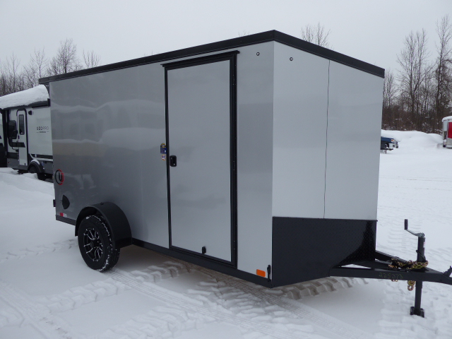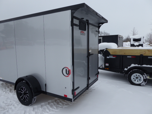 2026 UJ 6 X 12 Stock #5373, Black-out Package, Barn Door, Rear Stabilizer Jacks, 24˝ Stone Guard, Steel Unibody Construction, Protective Undercoating, 2” Coupler, Tongue Jack , Aluminum Fenders, 3000lbs Dexter 4˝ Drop Torsion Axles with E-Z Lube Hubs, 3/8” Plywood Walls,  3/4˝ Plywood Floor, 4-Bolt-in D-Rings, 16˝ Ceiling, Walls, & Floor, 6’ 6” Interior Height .030 Taped Exterior (Screwless), 15˝ Radial Tires with Alum Wheels, 12 Volt Dome Light with Switch, 32” Side door, LED Lights, Colour Black