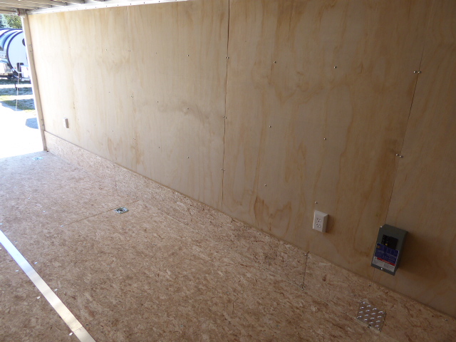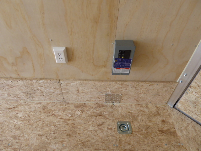 4-12V LED interior Dome Light, Roof Vent, 2 Electric Outlet plugs with 30 Amp Motor base,  3/8 Plywood walls, Alum 30” Step at side door,