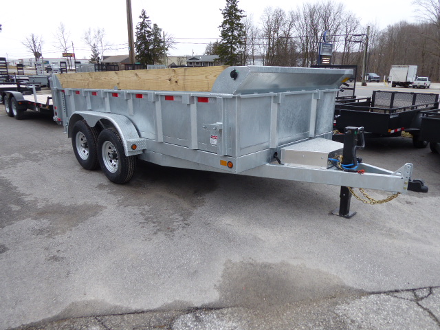 2026 83×14 Canada Trailer Dump, 2-7,000lbs With Easy Lube Spindles, Slipper Spring Suspension, 16” Radial Tires, Electric Brakes on both Axles, Adjustable 2 5/16” Coupler, 12,000lb Drop Leg Jack, 3000PSI Hydraulic Power Pack, 20’ Hand Remote and Wireless Remote, 5” Hydraulic Cylinder & Scissor Hoist, Interstate Battery & Plug in Charger, 20” Steel Side with 10” Wood Plank, Ramp Kit, Barn Doors with Cam Lock, 2 Way Gate, Shielded Tarp and Roller, Steel Floor, 6 Heavy Duty Weld In D-rings, Spare Tire Mount on Passenger Side, LED Lights, 7-way Plug, Galvanized Coating , Registration and Plate Included