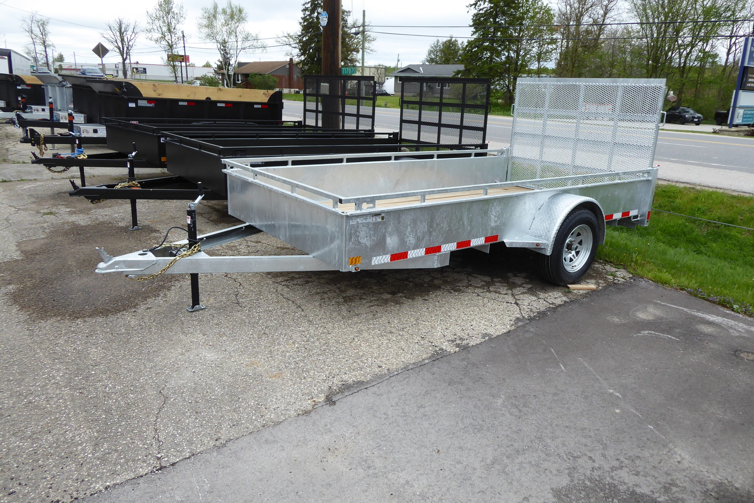 2025 Canada Trailer, 6×12, Galvanized, Stand-up ramp with Mesh, 1- 3000 LB Axle with Easy Lube Spindles, Double Eye Spring Suspension, 205/75R15 Radial Tires, 2” A-Frame Coupler, 2,000lb Jack, 16” Solid Steel Sides + 3” Tie Rail, Pressure Treated Wood, (4) Welded in D-Rings, Spare Tire Mount, Transport & D.O.T Approved, Sealed Beam, LED Lights, Flat 4 Plug, Registration and Plate Included