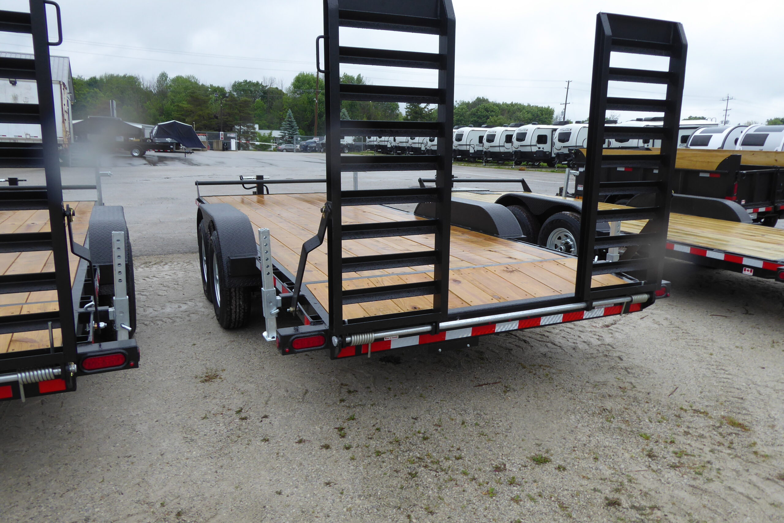 2026 7×20 Canada Trailer, (2) 7000lb Axles with Easy Lube Spindles, Slipper Spring Suspension, 16” Radial Tires, Galvanized rims, Electric on Both Axles, Adjustable 2 5/16” Coupler, 2’ Beavertail with Wood Floor, 5′ Spring Assisted up-right ramps , Pressure Treated Wood, Stake Pockets & Rub Rails, Spare Tire Mount, Transport & D.O.T Approved, Sealed Beam, LED Lights, Round 7 Plug, Powder Coat + Scorpion Stone Guard, Registration and Plate Included