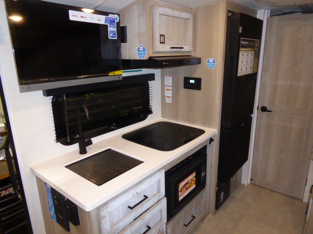 | Floor Plan Features Length: 21’ 2” Weight: 4,012lbs Sleeps: Front Murphy Bed | Also Included at Terry’s Trailer Service Full Propane Tank 2 New Battery $150 in store gift card Full Demonstration (Set-up to Pack-up) License plate and Registration | Appliances 3-Burner Cooktop with Glass Cover 13,500BTU Low Profile A/C Gas/Electric water heater 20,000 BTU Furnace Gas Griddle Prep Convection Microwave 12V Fridge |