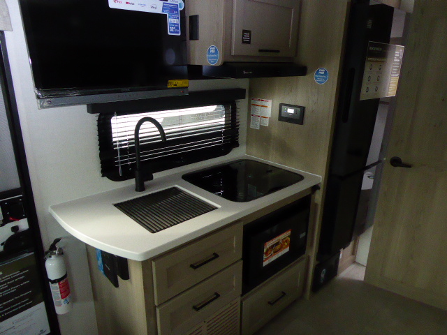 3-Burner Cooktop with Glass Cover 13,500BTU Low Profile A/C Auto Ignite Gas/Electric Water Heater 20,000 BTU Furnace Gas Griddle Prep Convection Microwave 12V Fridge |